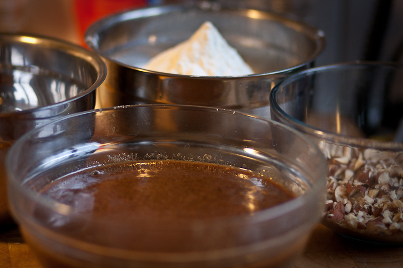 Blanda alla ingredienserna utom saltet och arbeta degen i hushållsmaskin i 10 minuter. Tillsätt saltet och kör 5 minuter till. Låt degen vila i bunken i 30 minuter.