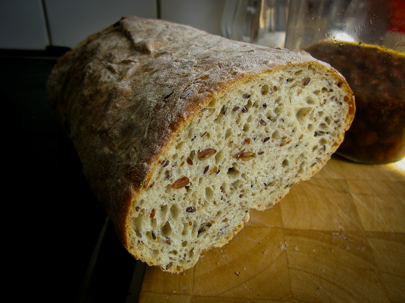 Jag har ända sedan jag började baka på allvar varit lite nyfiken på att göra riktigt Levainbröd – d.v.s. ett bröd gjort på vildjäst enligt alla konstens regler. Jag började med att kolla igenom Jan Hedhs böcker, men tyckte att proceduren var väl omständig och allt annat än glasklar, minst sagt. Ett halvhjärtat försök senare så landade jag med nån degklump som inte alls jäste som den skulle, och jag fick rädda den med lite vanlig jäst i slutänden…helt ok bröd, men det var ingen Levain.