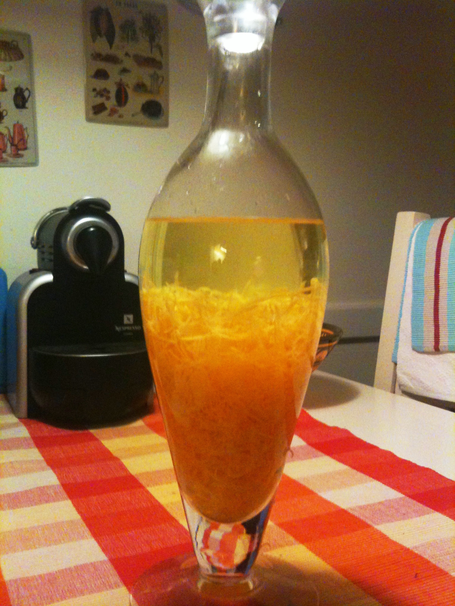 Låt stå i ett dygn i kyl, sila av och slå upp på väl rengjord flaska.