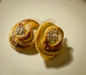 Mängden smör är onekligen på gränsen till bisarr, så det är ju inget man äter ofta – men just smörsmaken är ju vad som gör bakverket. Man kan intresserat notera att när vi köpte färdig smördeg på jobbet så var den laktosfri? Man kan ju undra….