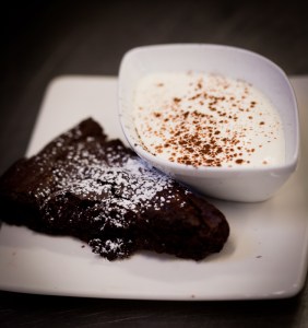 Det här är riktig godbit – en häftigt ‘chokladig’ valnötsbrownie som är glutenfri. Originalreceptet kommer ut Leilas ”One More Slice” – i vanlig ordning lite lätt modifierat för att passa min smak. I mitt fall just den här veckan så uteslöt jag nötterna p.g.a. gästens allergi, men den var fantastisk god även utan – apelsinskalet sätter en härlig smakbrytning.
