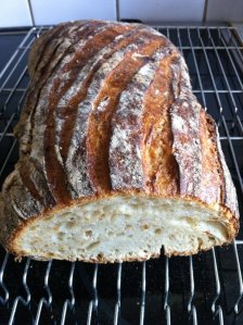 Helgen har varit ledig och inbjudit till lite experiment i köket – och det passade extra bra då jag nyligen köpte ännu en brödbok, ”Den Franske Bagaren: Surdeg, mat, kärlek” av Sébastien Boudet. Lite extra kul då min fru känner honom lite grann – och han är onekligen väldigt omtalad just nu inom de bakintresserades värld. Är den bra, då? Jodå – väldigt snygg bok, bra beskrivningar och redogörelser för hela processen…. proffsig, helt enkelt. Men man ska vara medveten om att den riktar sig till de riktiga brödnördarna där det gärna får ta 2-3 dagar att baka ett bröd – det är inte en bok som man plockar upp om man vill ha ett bröd att äta samma dag.